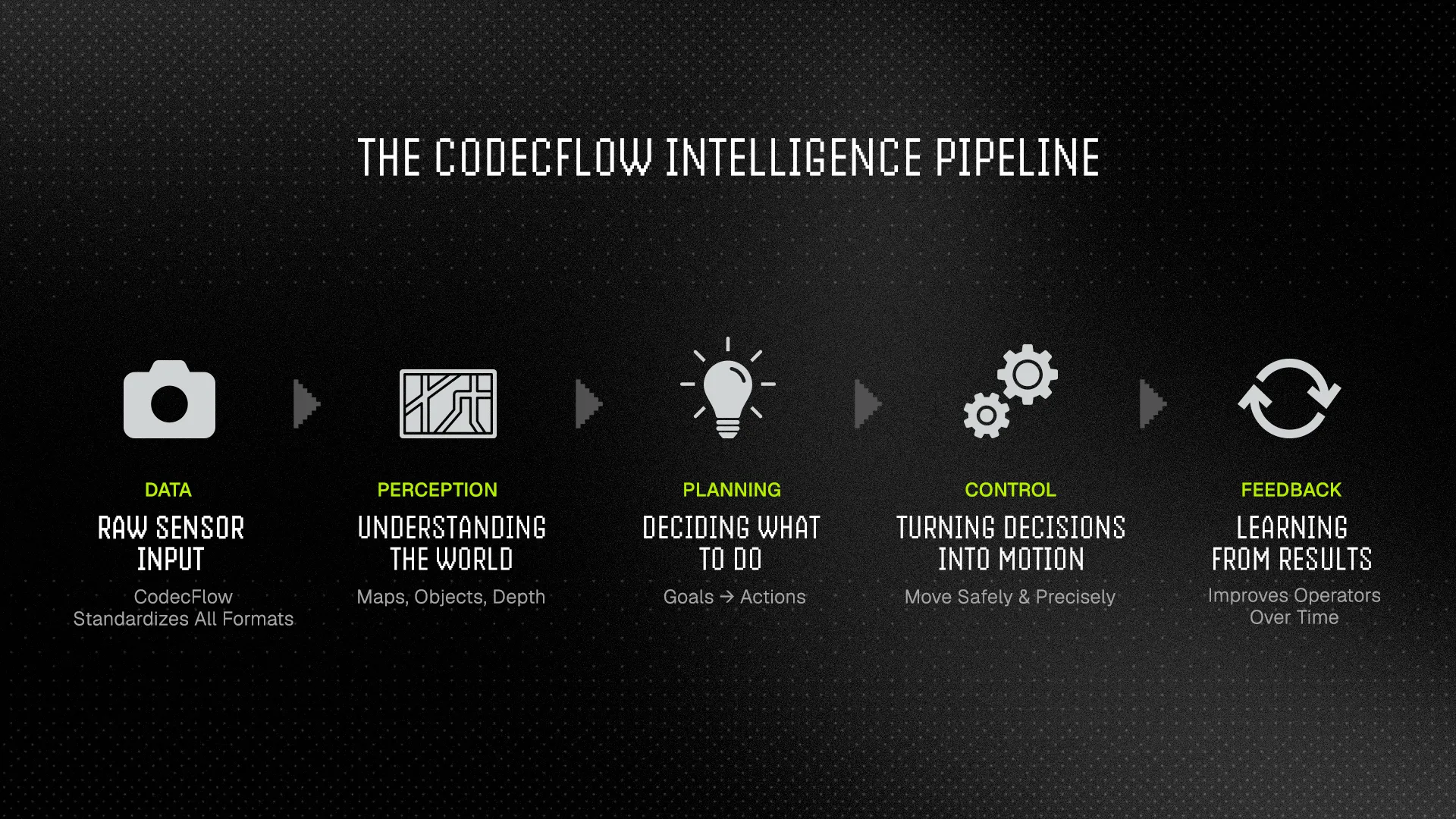 CodecFlow is the conductor of this symphony, transforming chaotic environmental noise into purposeful, elegant action. This is the pipeline that turns a machine into an agent.