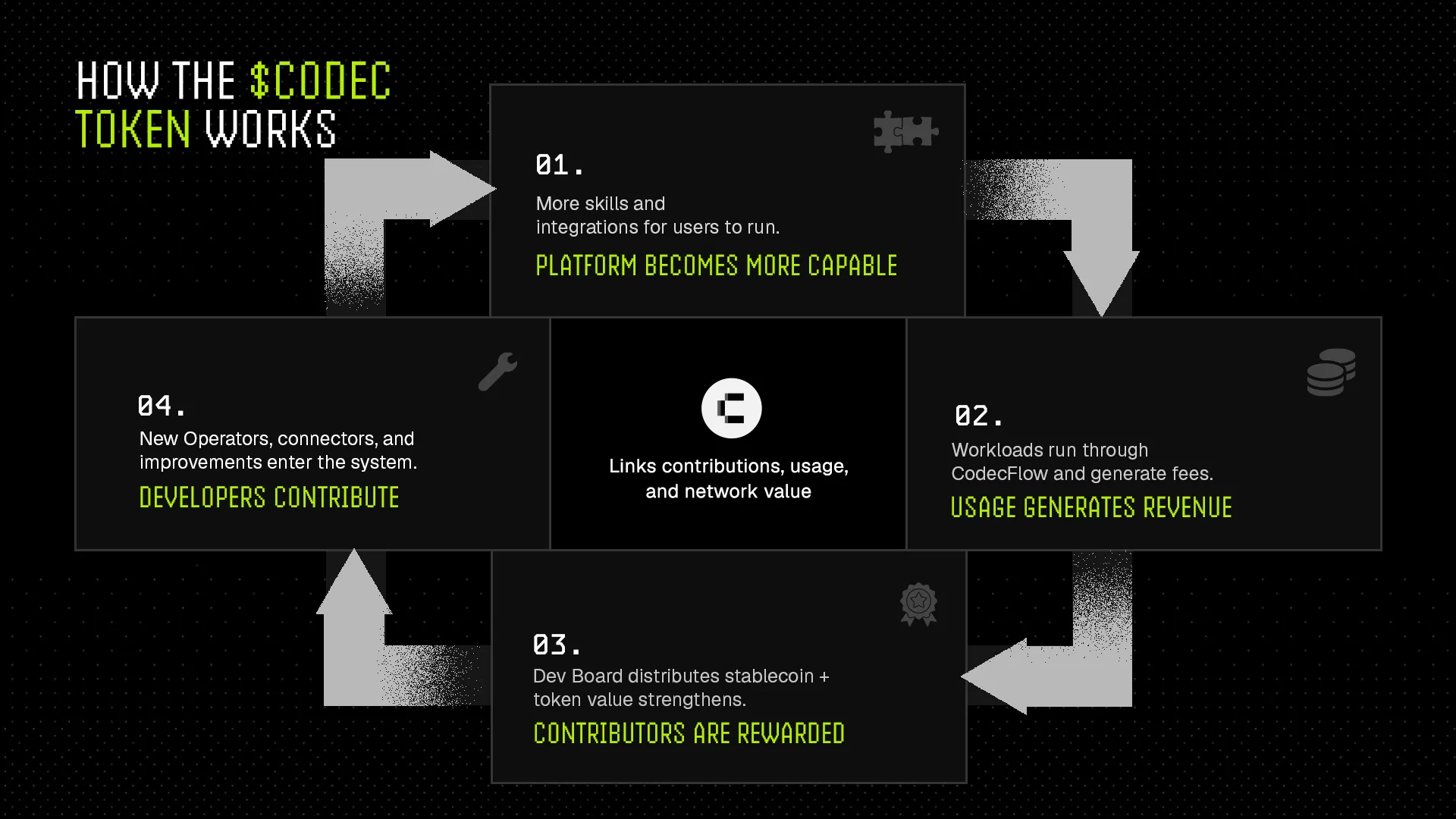 - The Result: This produces a self-reinforcing engine: better tools lead to increased usage, which drives revenue, which further strengthens the $CODEC token that anchors the entire ecosystem.
